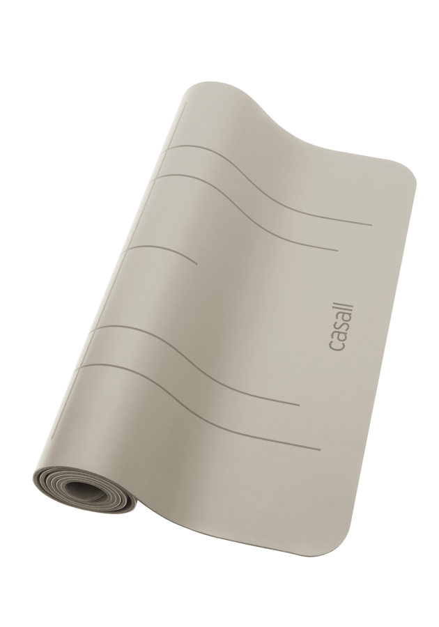 - Cleanse – if needed, every now and then, either using a cleaning agent intended for yoga mats suitable for the type of mat you have or mild natural water-based soap and cold water. Don’t apply the cleaning agent or soap directly to the mat. Apply evenly across the mat with a sponge, wipe off with a clean damp sponge or towel, and let air dry flat. Yoga Mat Grip&Cushion III 5mm is absorbing moisture, so be extra gentle with the amount of water used, try to use as little as possible.