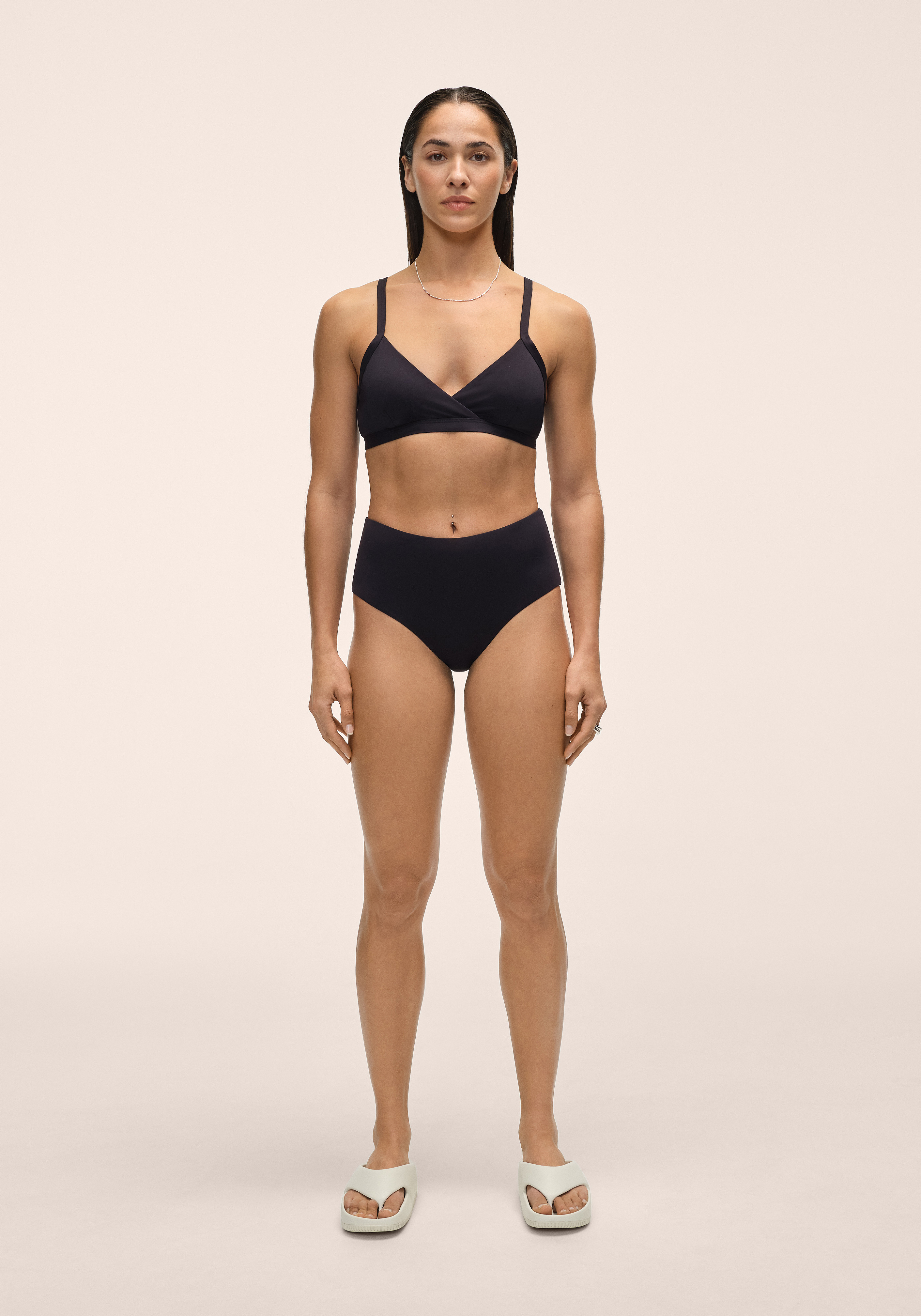 The outer fabric is made in Italy from a lightweight yet opaque ECONYL® regenerated polyamide, which is produced from discarded fishing nets and other leftover polyamide materials. The fabric is quick-drying and resistant to sunlight, seawater, and chlorinated water. SPF 50+.