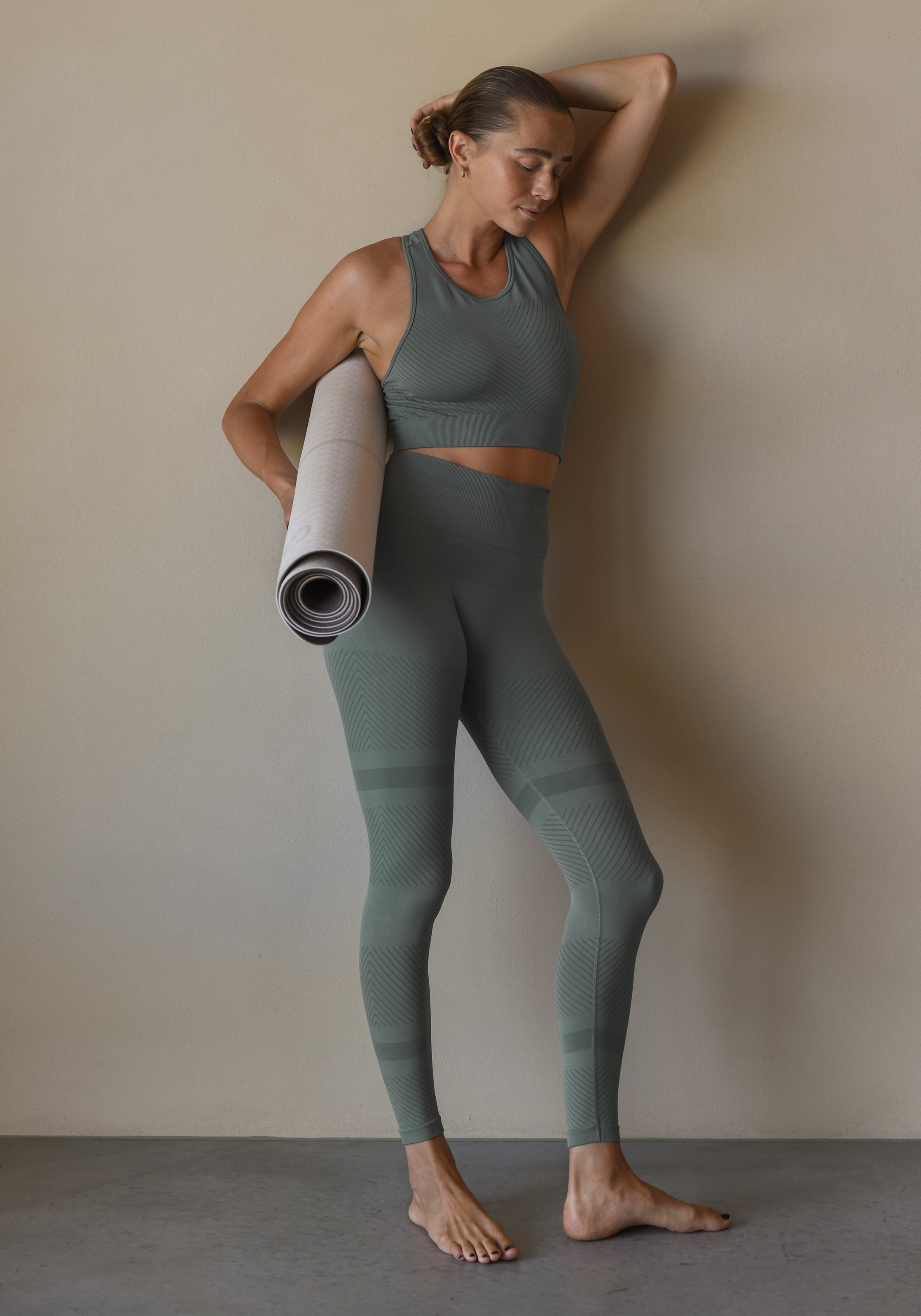Diese weiche, dehnbare Tights besitzt eine einzigartige gewirkte Struktur für einen modernen Karo-Effekt in unserem einzigartigen nahtlosen Material. Der hohe Bund verrutscht nicht, ganz gleich ob du unterwegs oder im Flow bist.