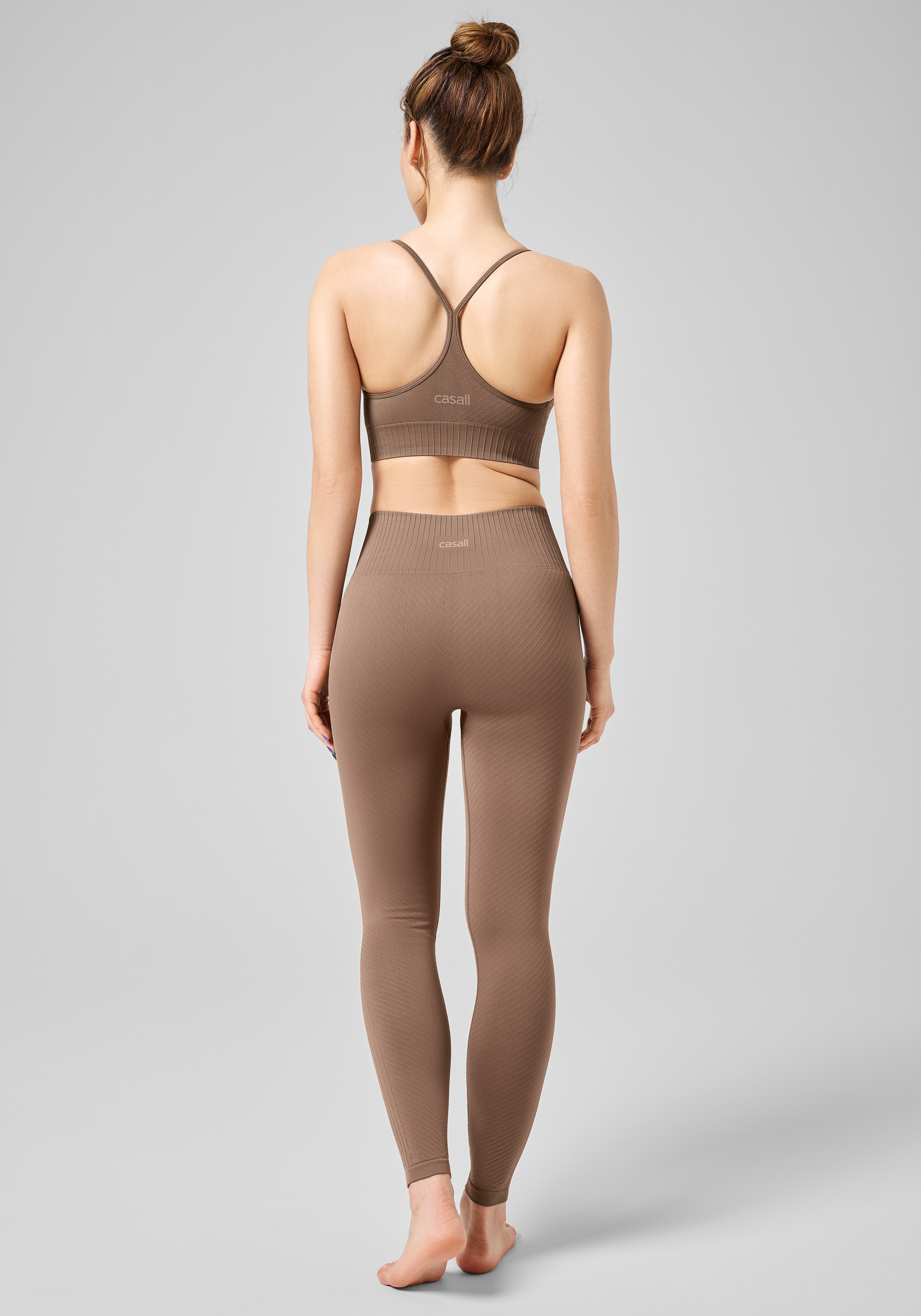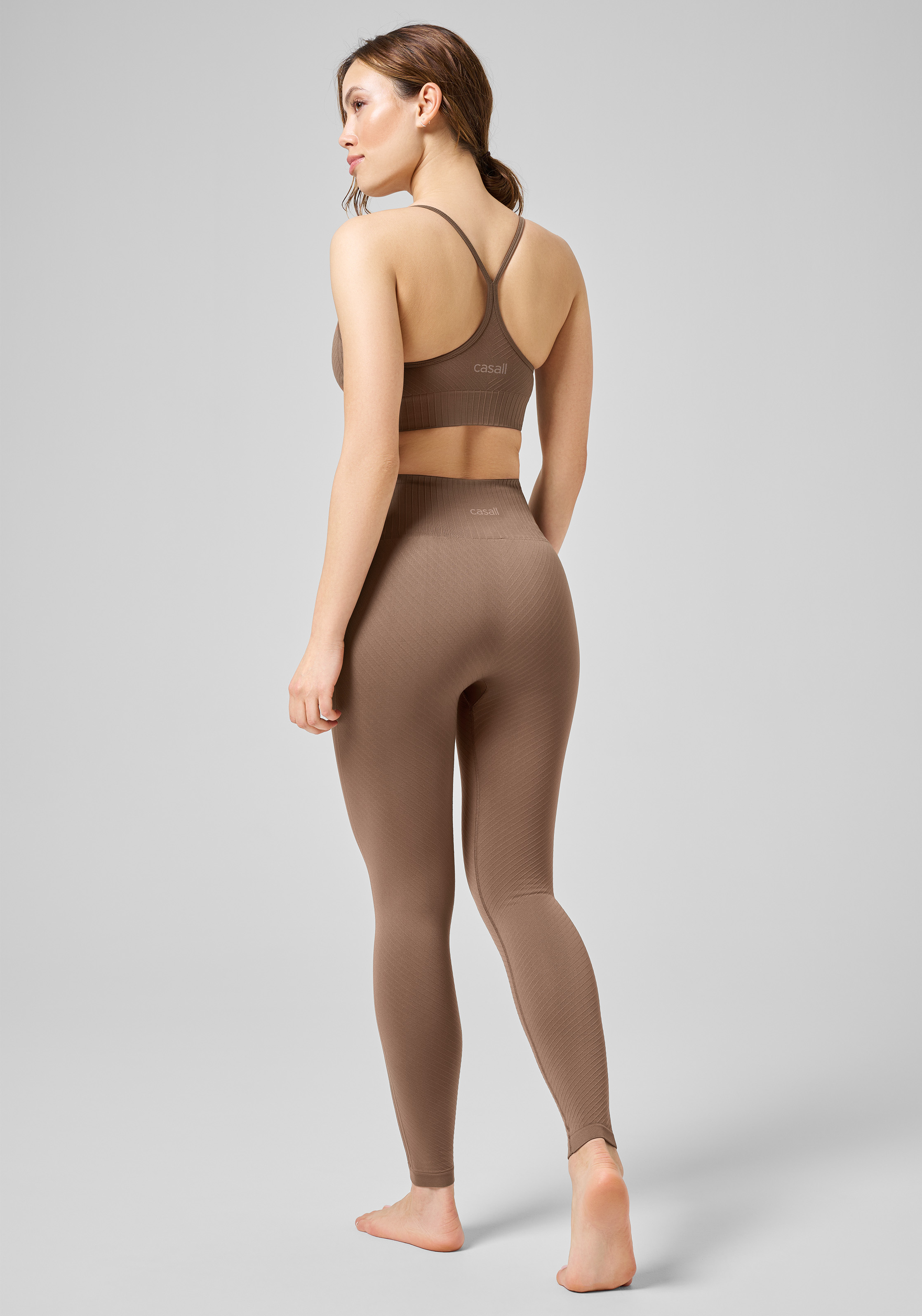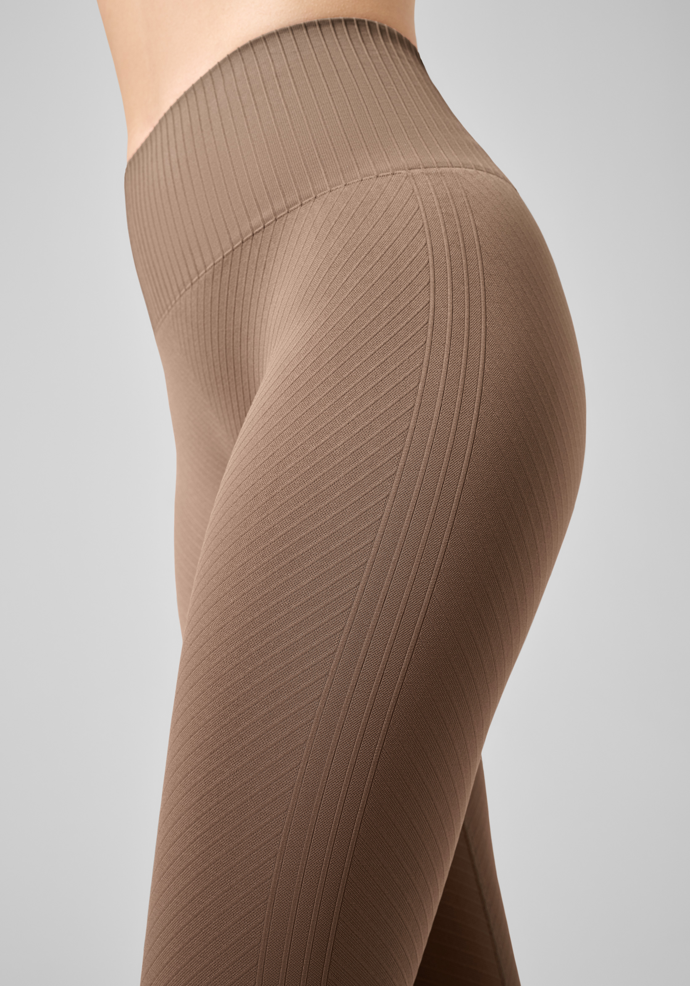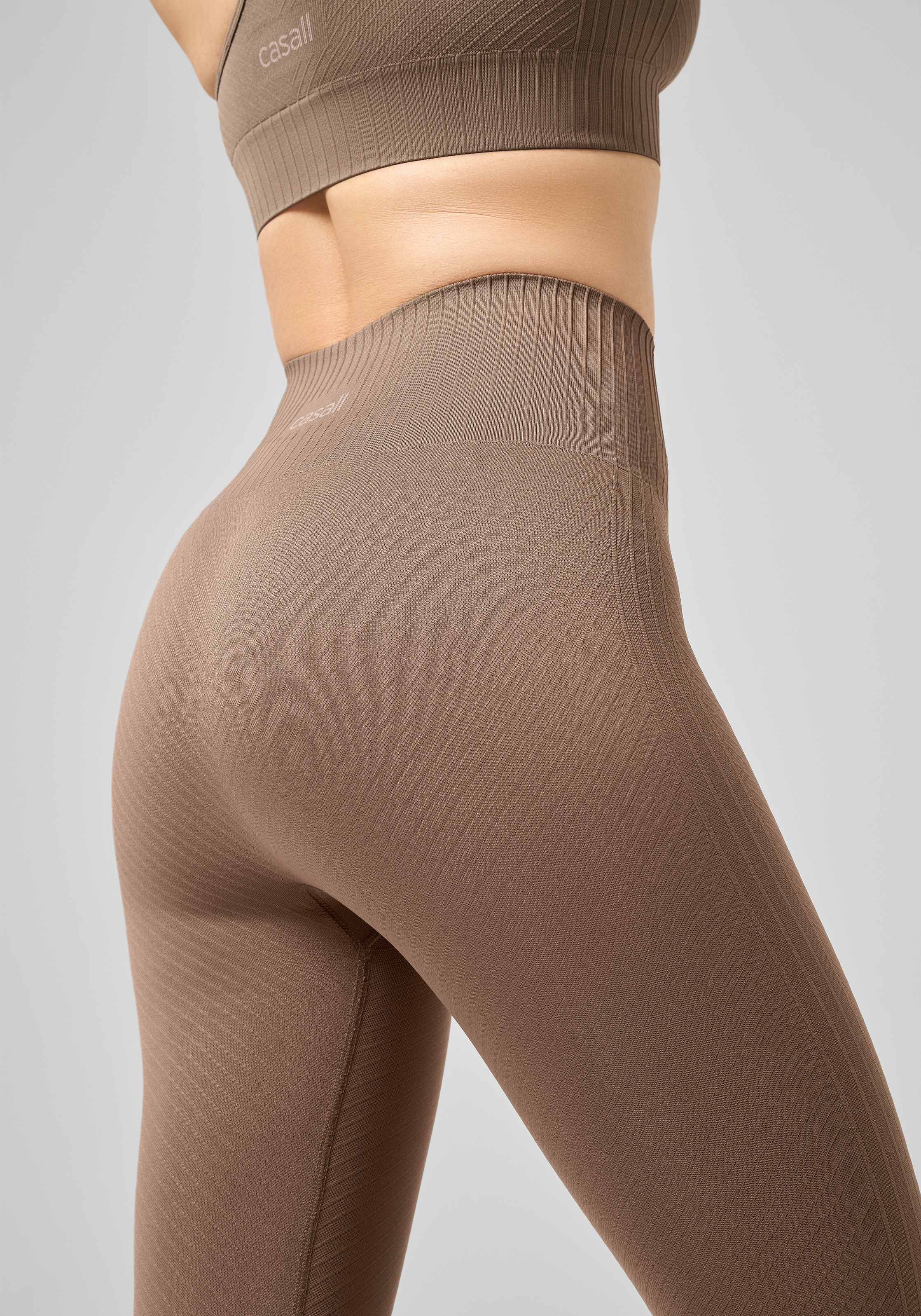 Lange nahtlose Tight mit hohem Bund, perfekt zum Yoga. Gefertigt aus weichem und folgsamem Recycling-Material mit subtilen grafischen Linien in einer gewirkten Struktur. Die Innenseite des Bundes ist für eine besonders bequeme Passform glatt gewirkt. Gefertigt aus Recycling-Material.