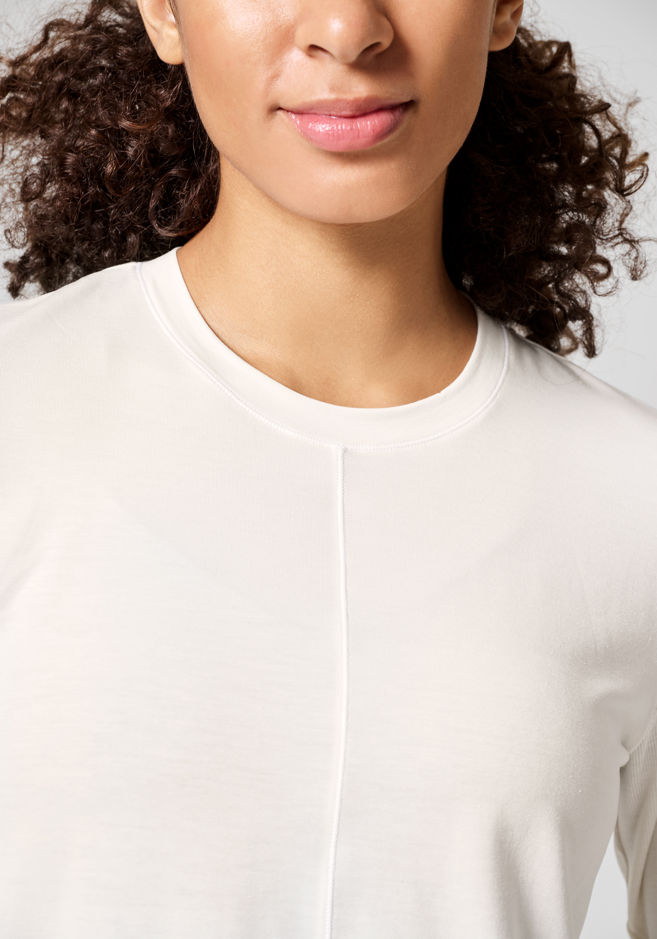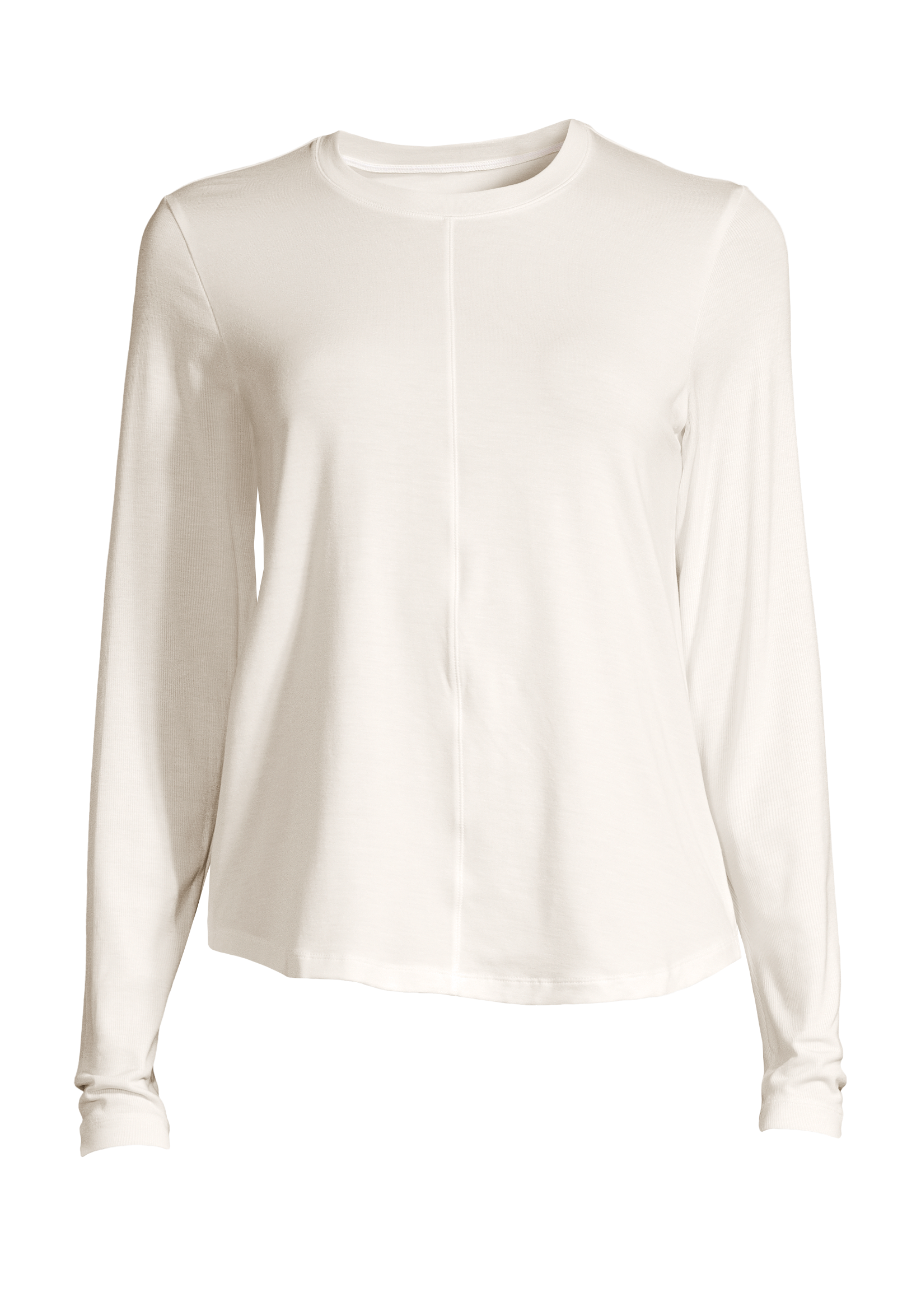 This ribbed long sleeve is lightweight and soft, making it an everyday essential. A seam at the front and slightly rounded hem add shape to this classic crew.