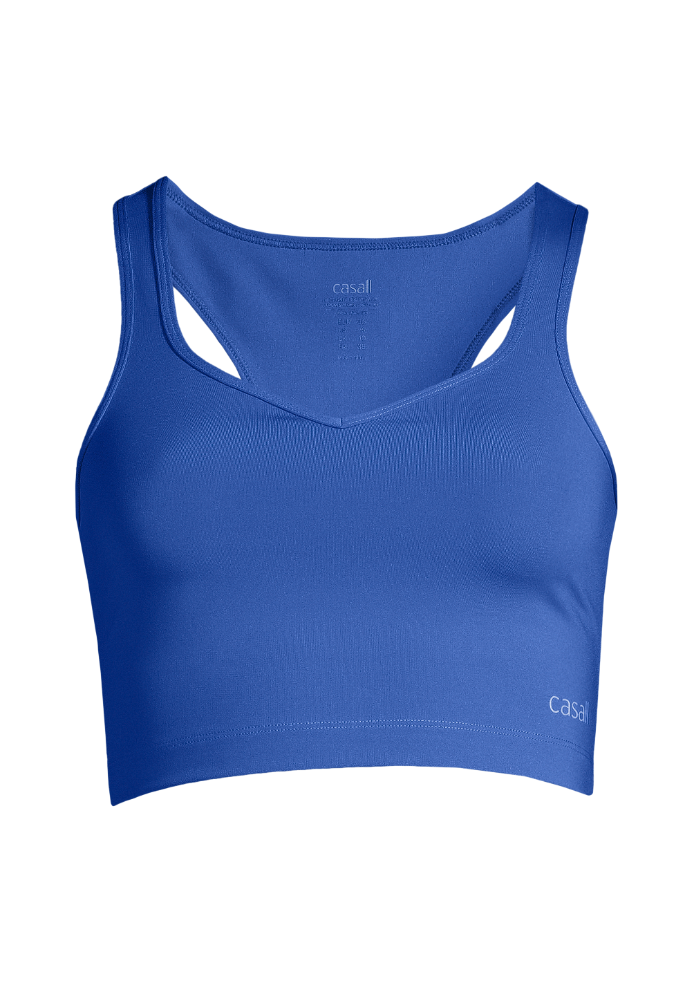 Cropped sports top with flattering heart-shaped cut. Made of a recycled and stretchy functional fabric with good support and a soft feel. Perfect for the gym.