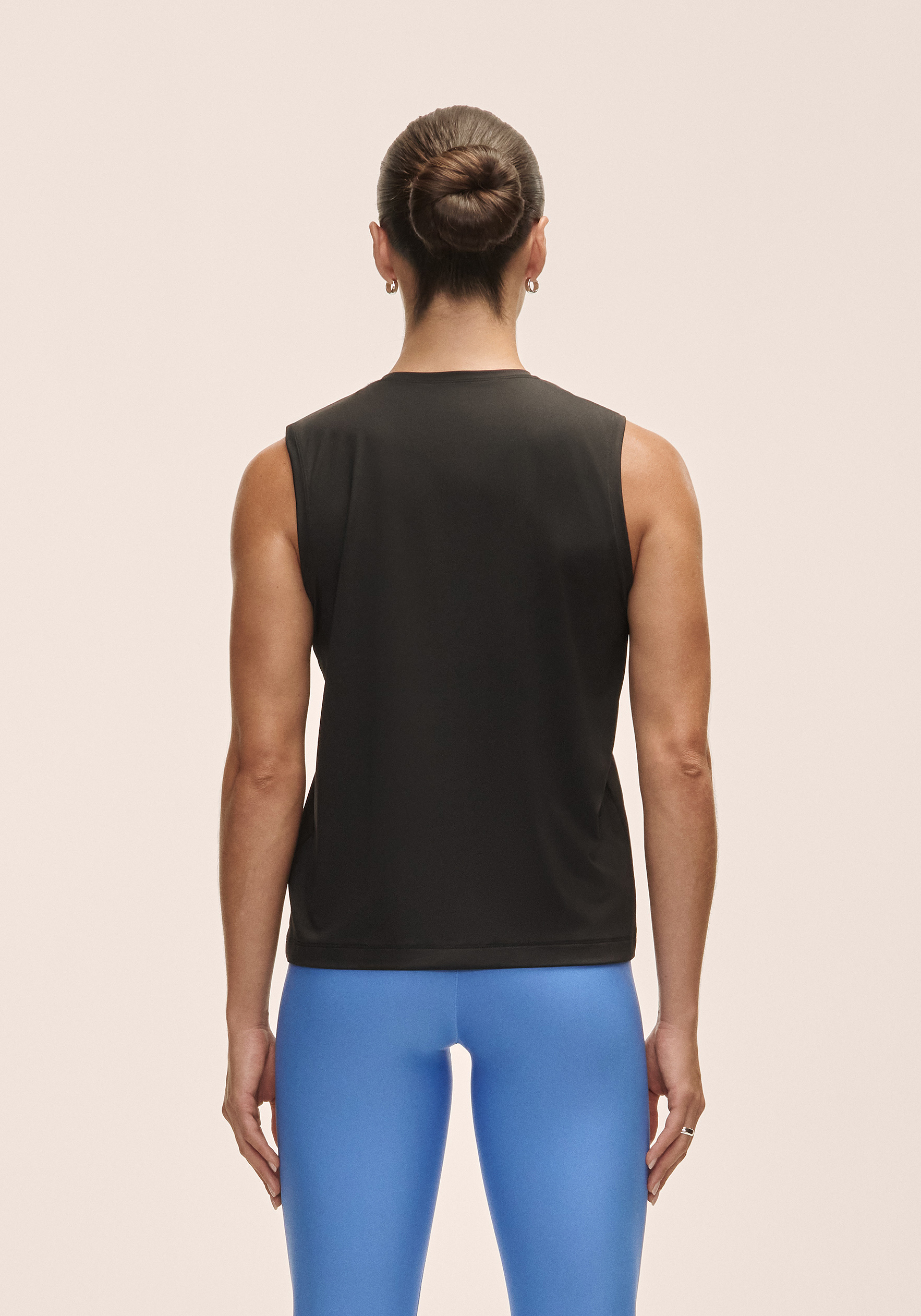 Träningslinne med klassisk rund halsringning tillverkad av återvunnen polyamid. Designad för löpning och gymträning. Hög andningsförmåga.