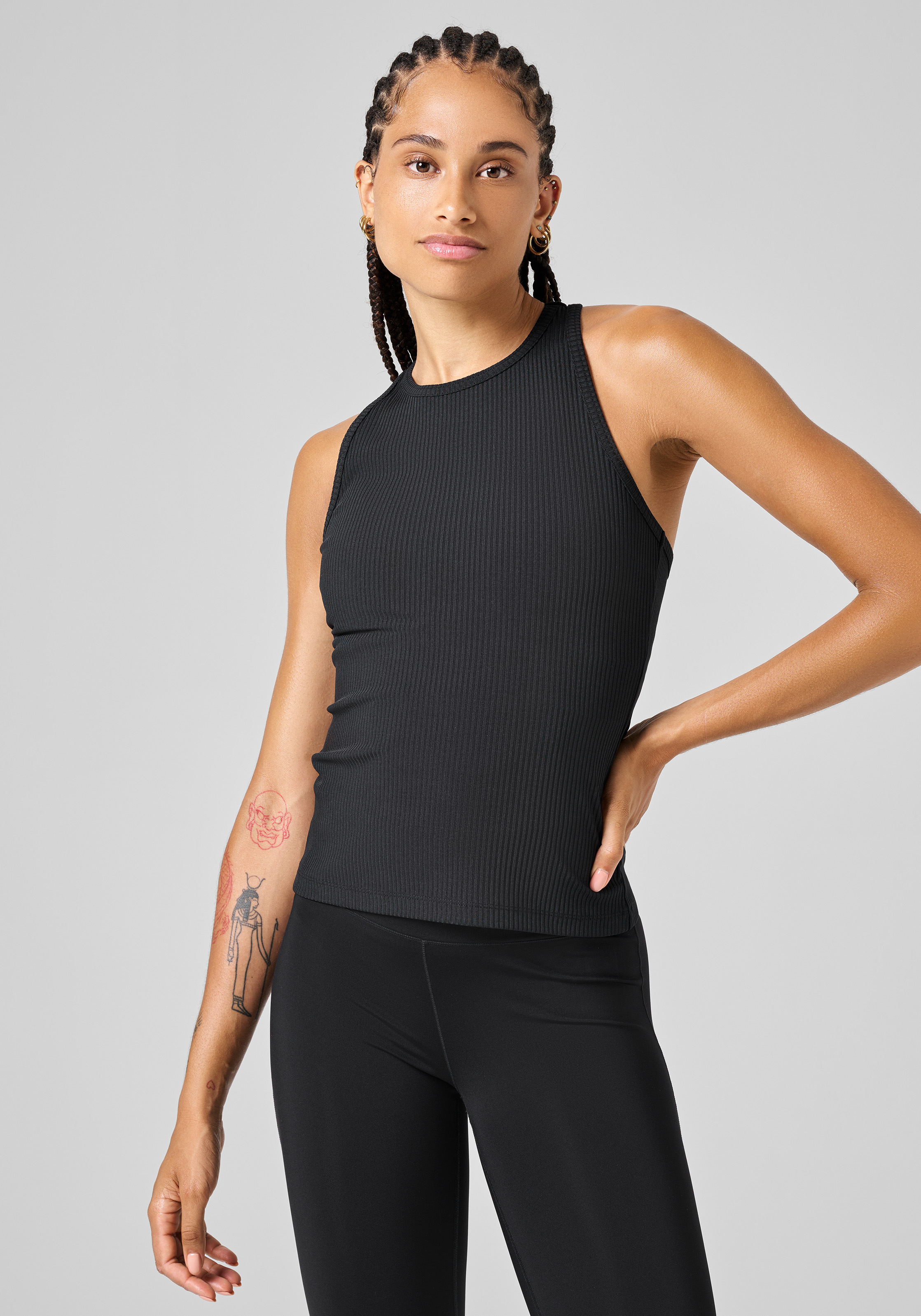 Känn dig ännu snyggare på passet med detta figurnära, ribbade linne med lätt glans. Designad för yoga, studio och att bära till vardags. Tillverkad av 51% återvunnen polyester med en touch av elastan för stretch. Hög halsringning och racerback-design för en sportig look.Signified Rib Tank är stor i storlek, vi rekommenderar att du väljer en storlek mindre än vanligt.