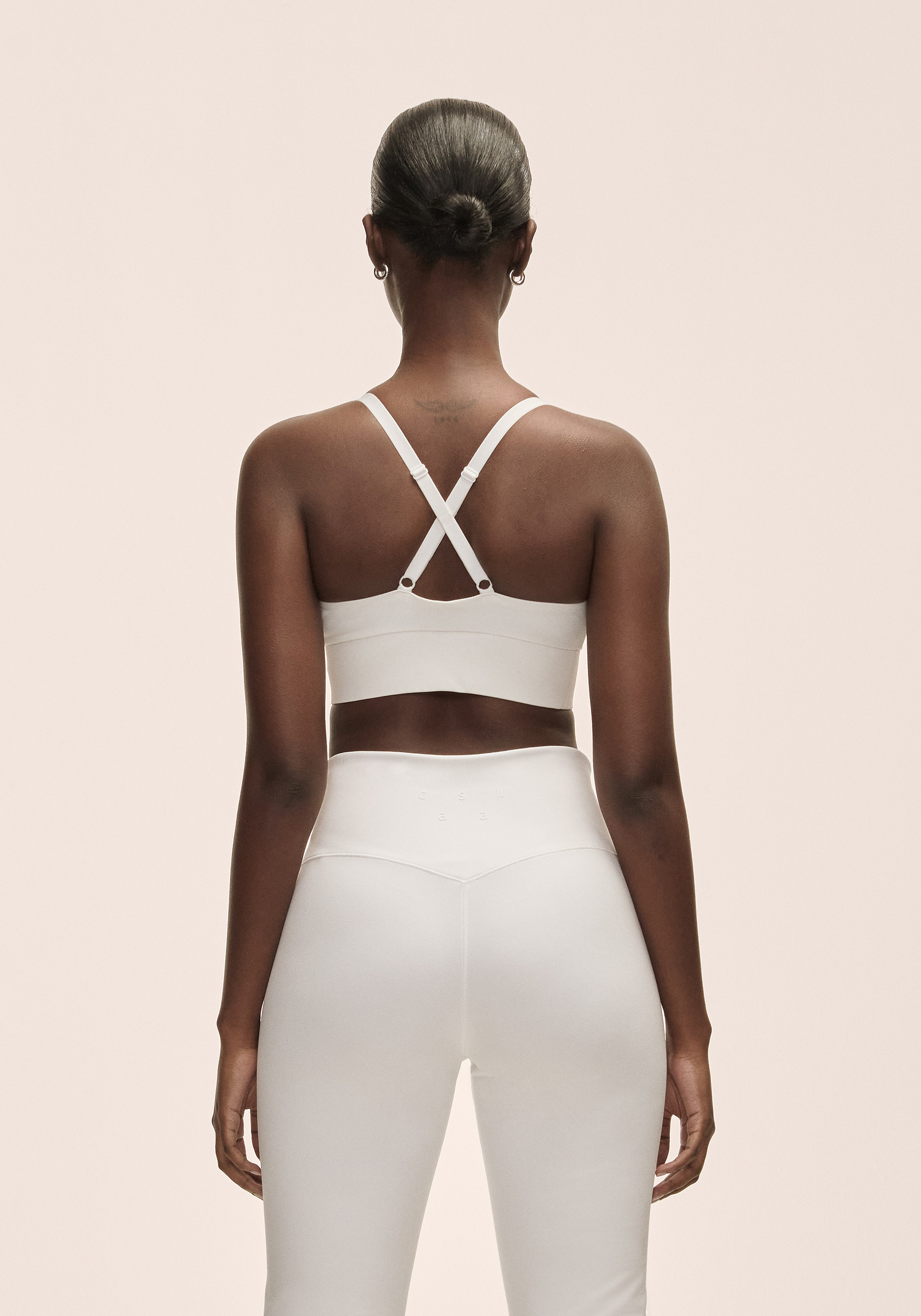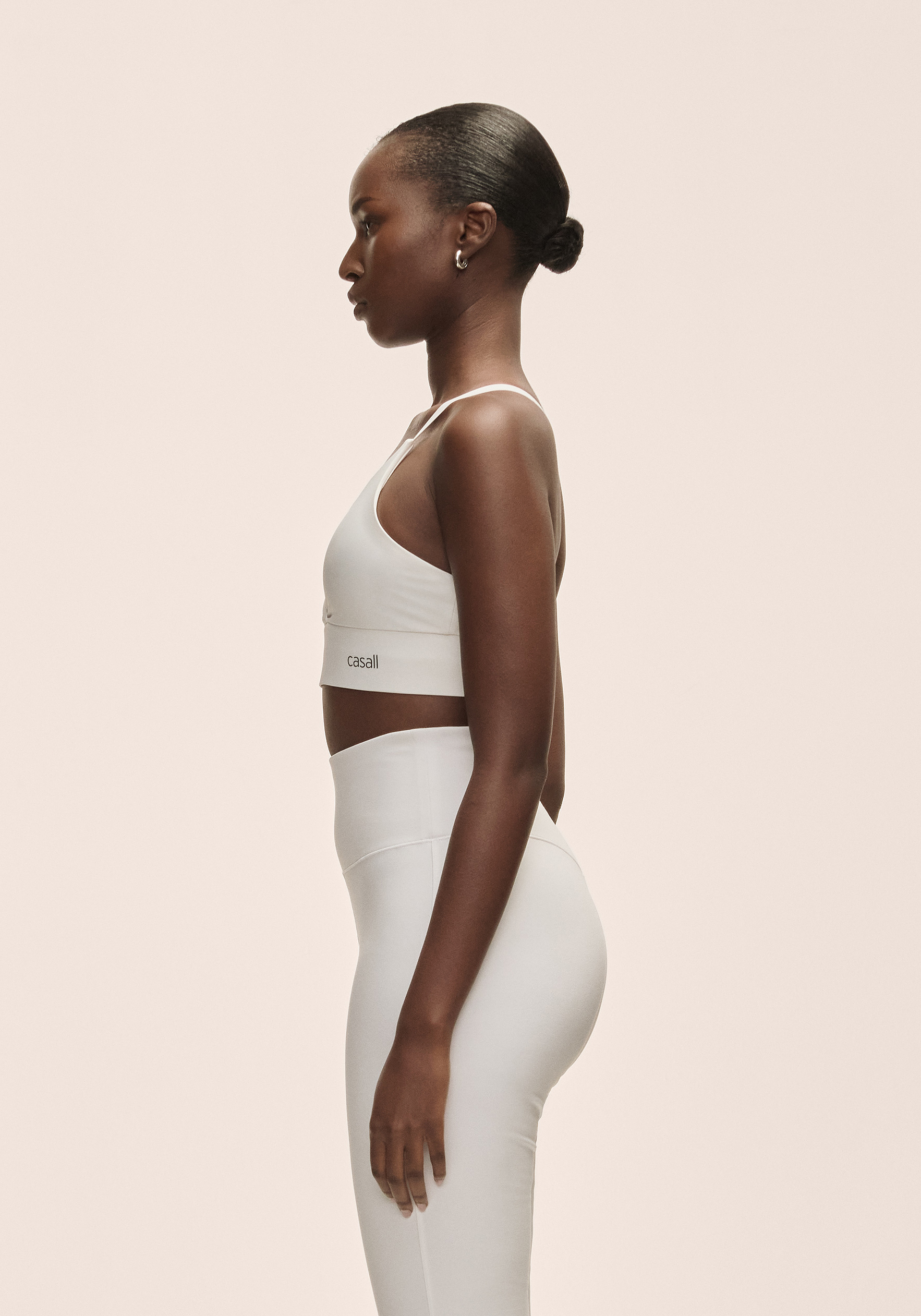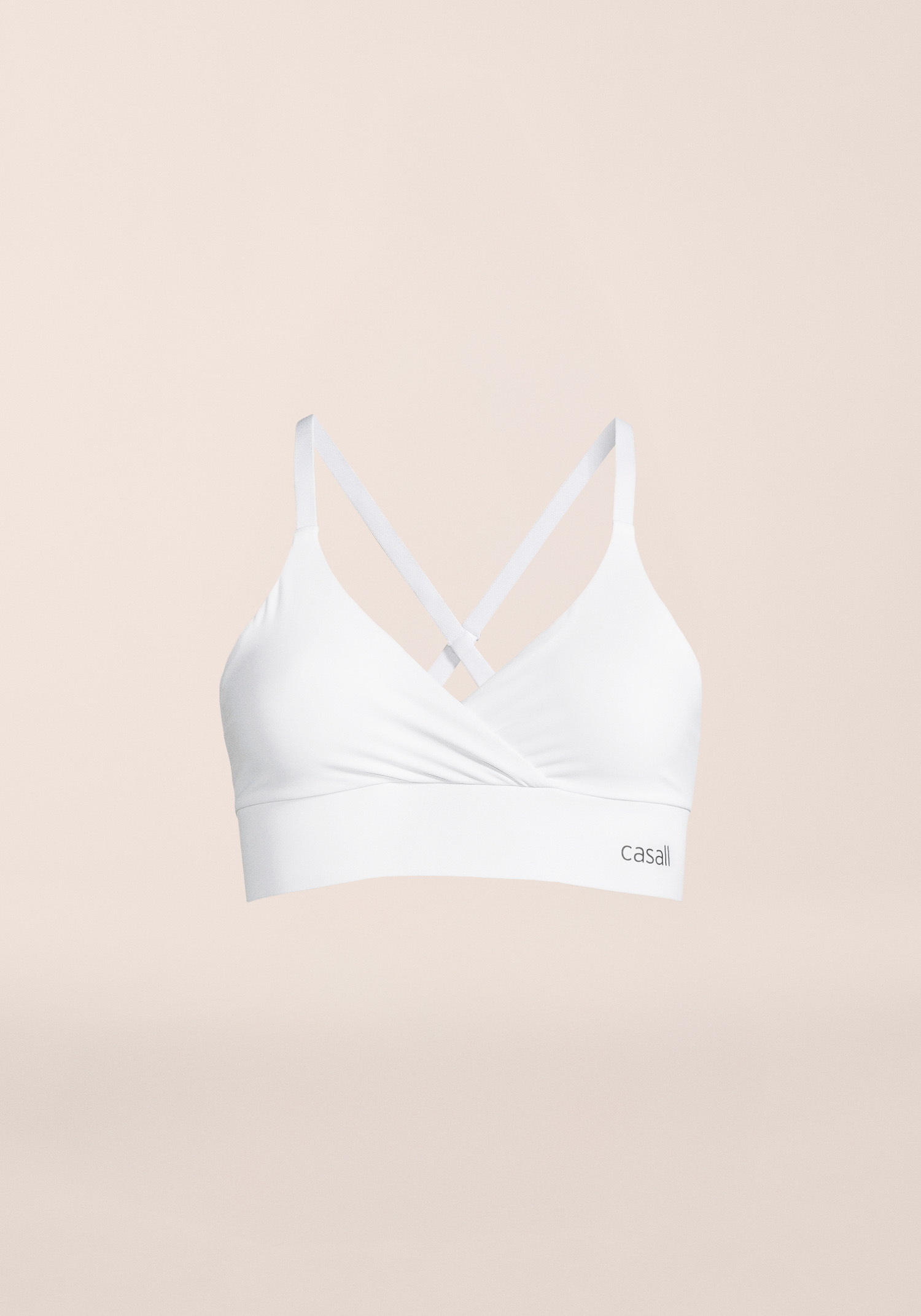 Smickrande sport-bh med omlott-design från Casall. Designad med lätt support för gym, yoga och studioträning med justerbara axelband och ett brett band under bysten. Svettavvisande material i återvunnen polyamid. Finns i storlekarna XS-XL.