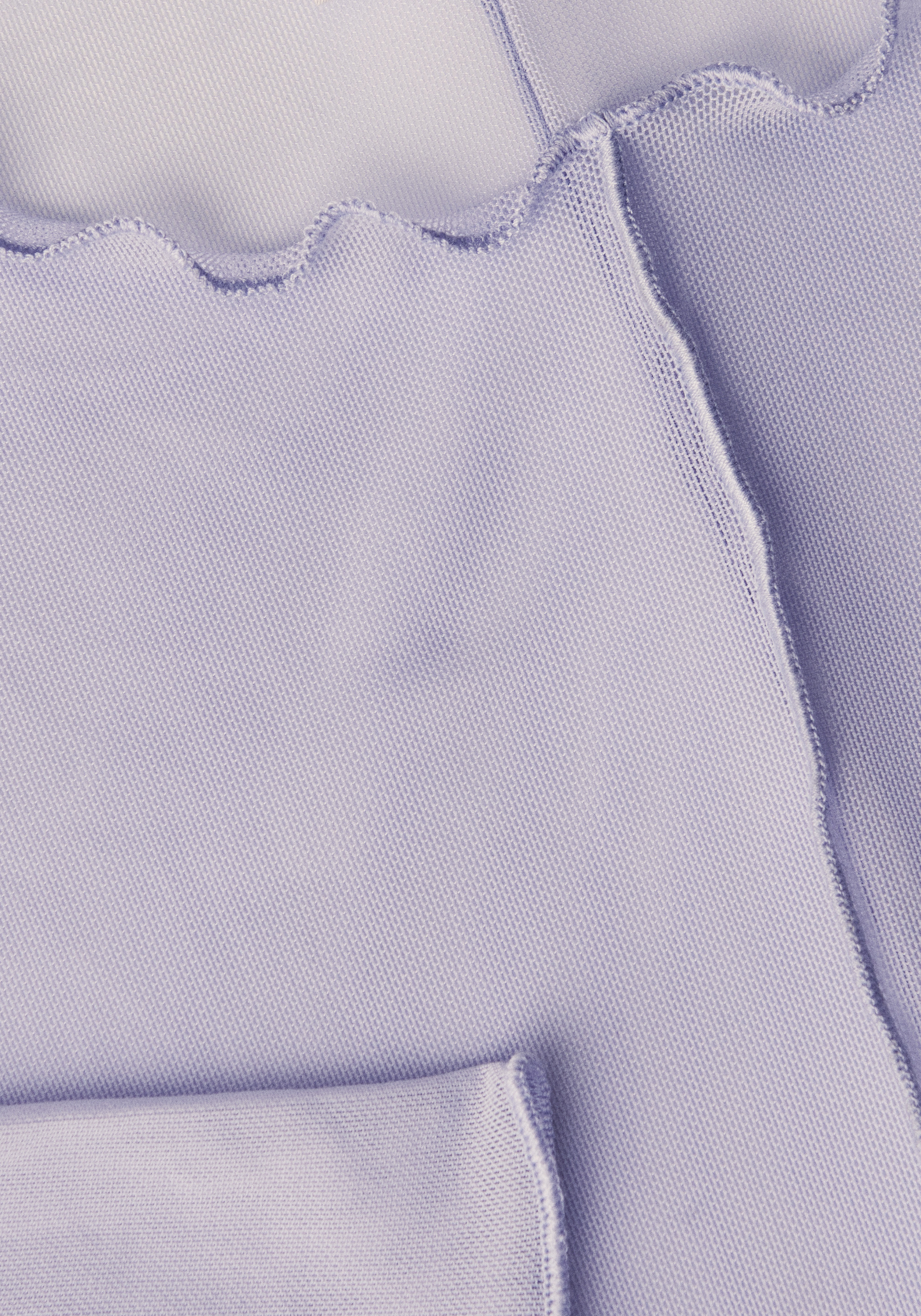 Ett tunt, skirt och mjukt meshtyg i delvis återvunnen polyester och elastan för bra stretch och stabilitet.