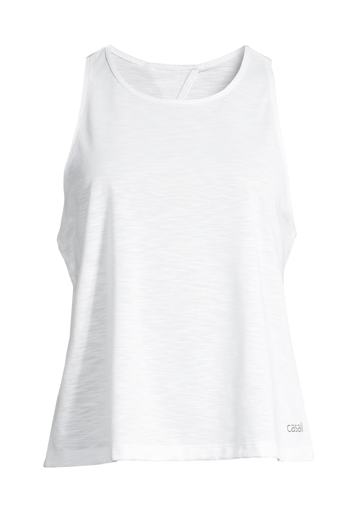 En topp med avslappnad passform, hög halsringning och öppen rygg. Designad för att ge dig maximal frihet i dina rörelser och yogapositioner. Toppen är tillverkad i ett återvunnet material med textur, som bidrar till en naturlig känsla.