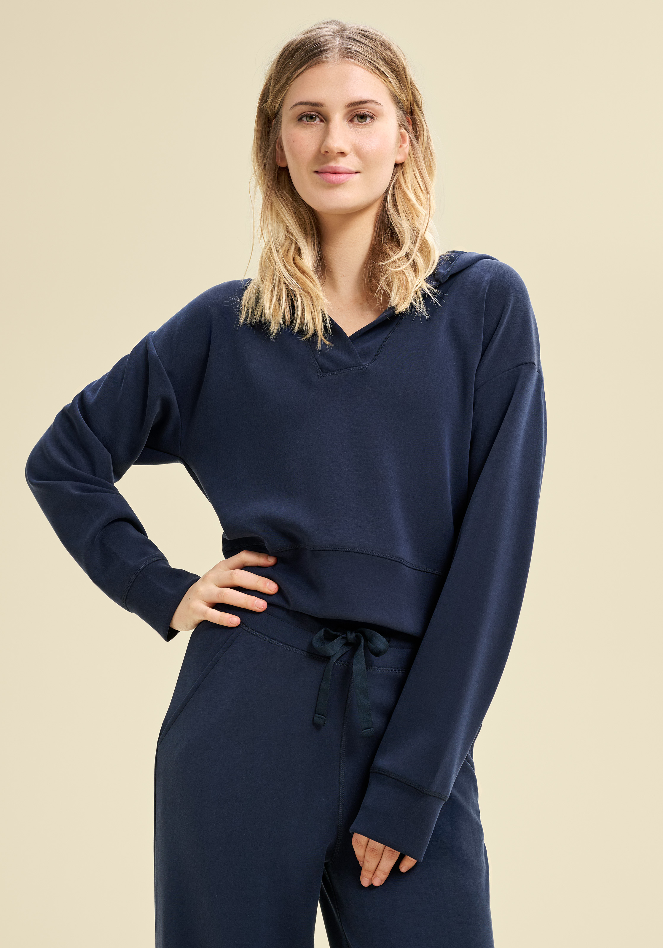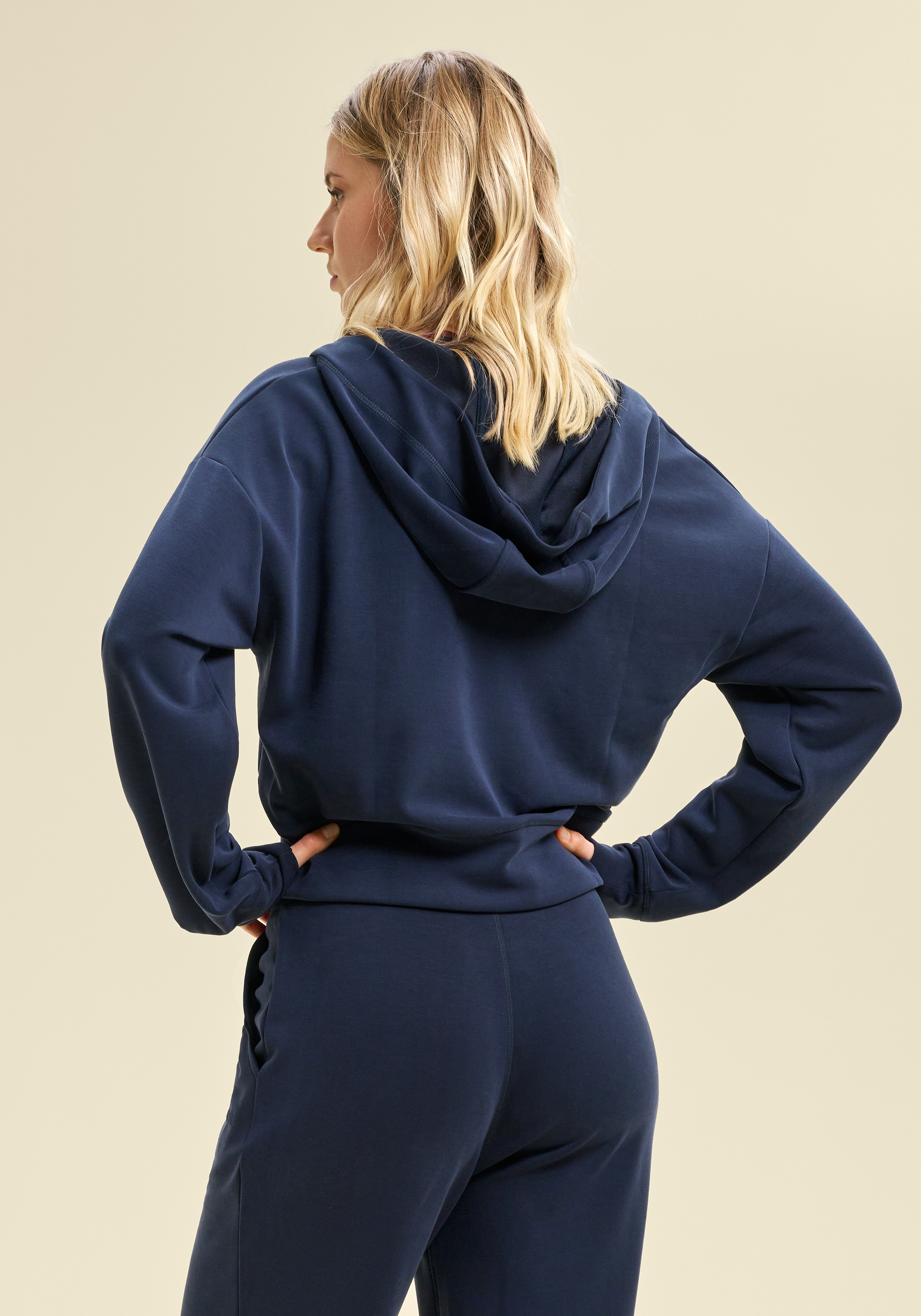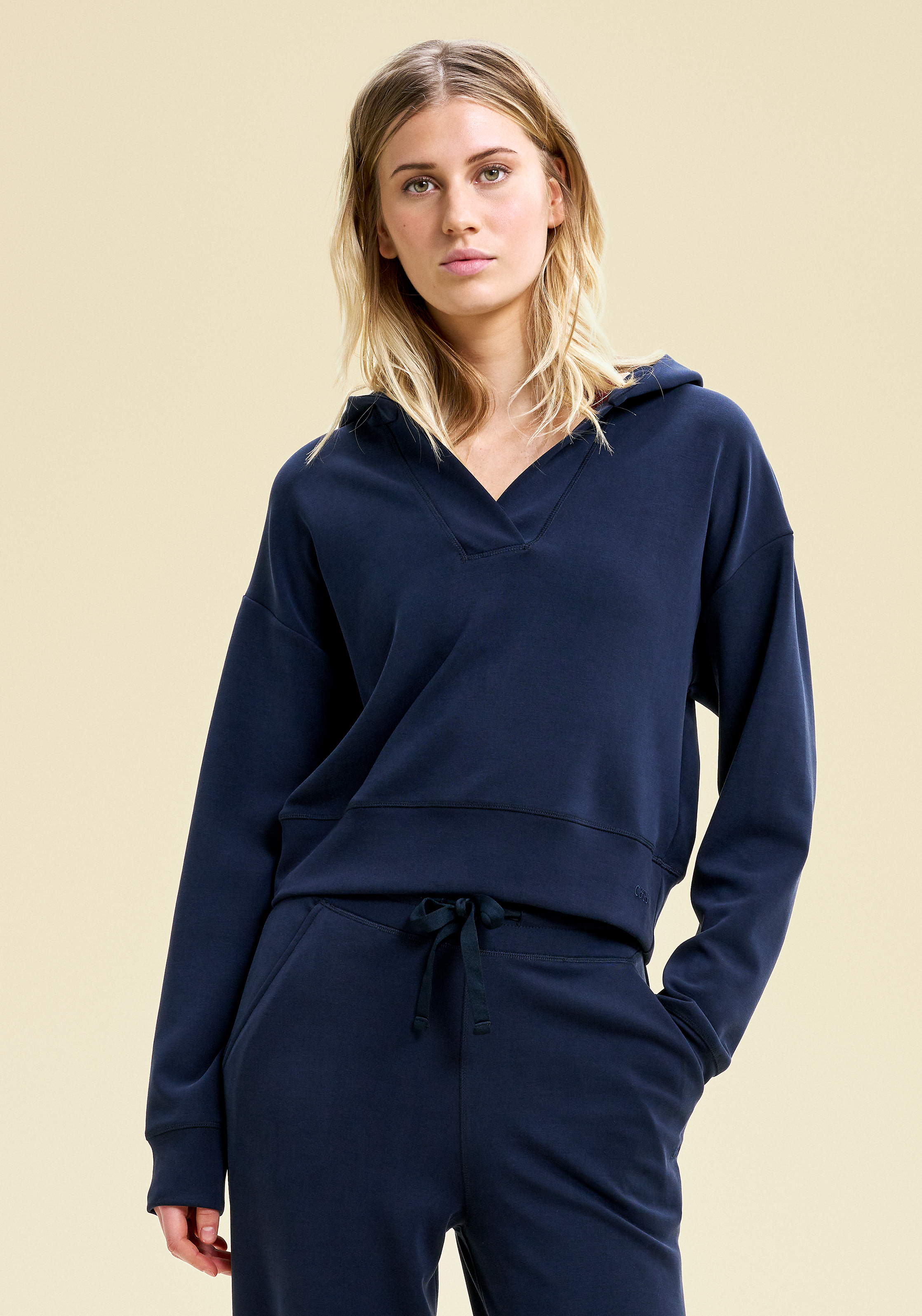 Den här supermjuka och lyxiga hoodien har en djup v-ringning, avslappnad passform och hellånga ärmar. Tillsammans med Peachy Straight Leg Jogger har du det ultimata loungewearsetet med en riktigt lyxig känsla.