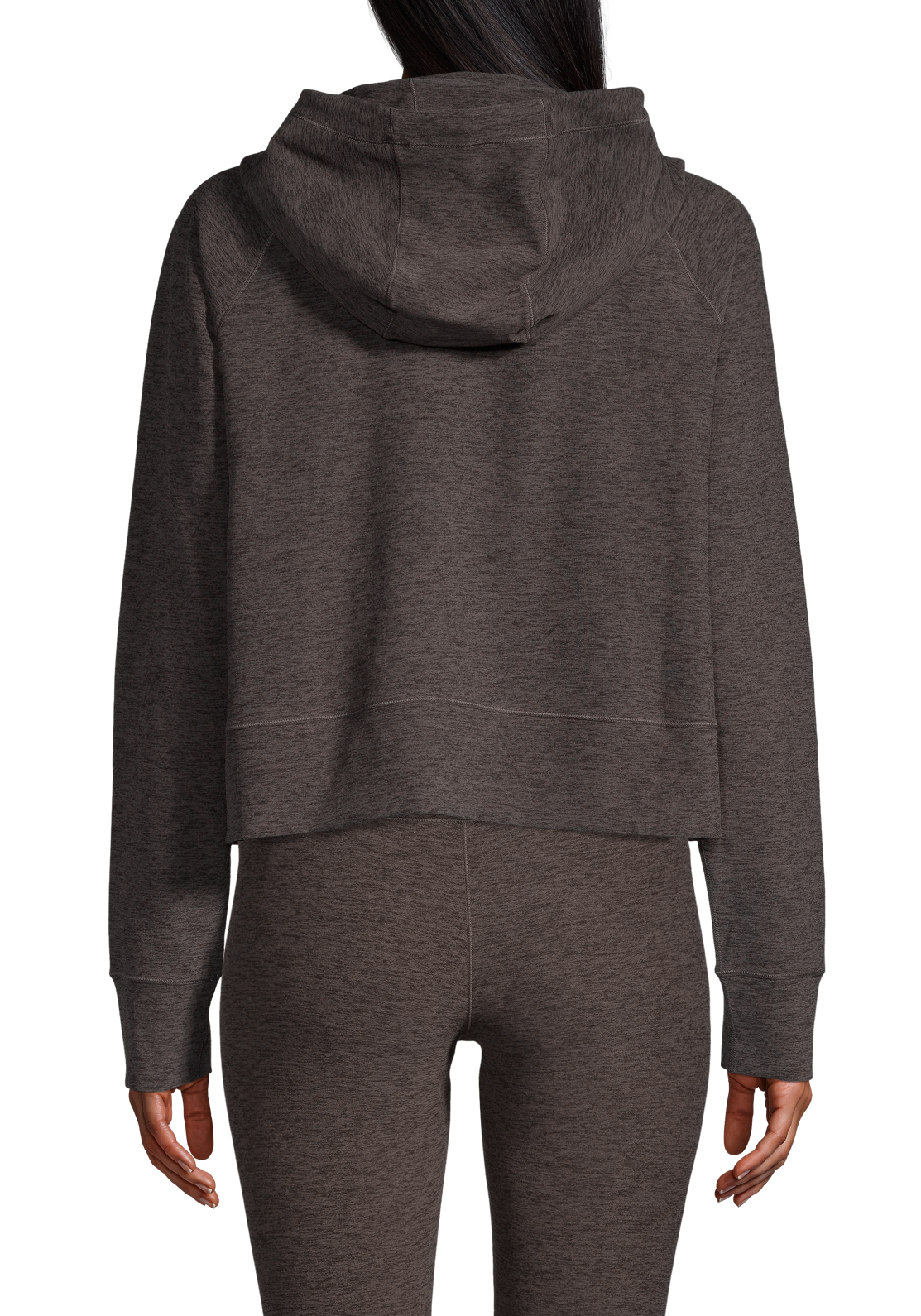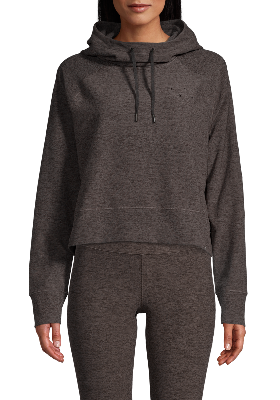 En mjuk hoodie i lätt och värmande material. Huvtröjan har en hög hals och dragsko som kan spännas åt, eller knytas löst för en avslappnad look. Det borstade återvunna materialet gör den extra skön att ha på sig. Perfekt för athleisure.
